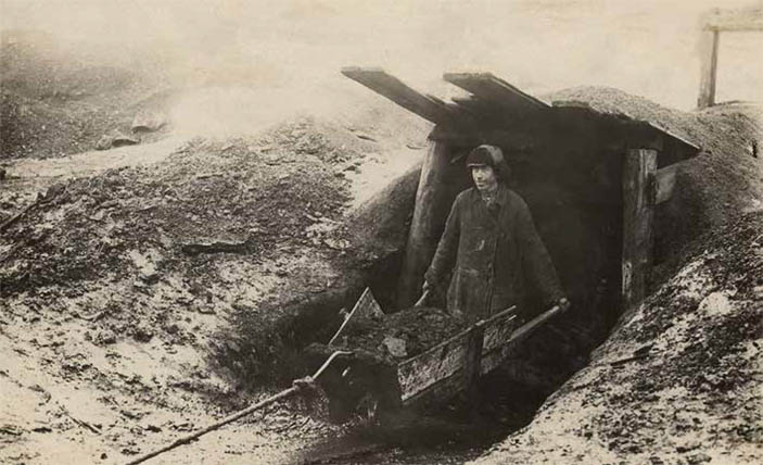 Сортировка сланца, шахта №1, 1 января 1932 года (фото и подпись К. Журавлева, из архива Пугачевского краеведческого музея)